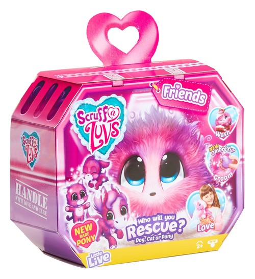 Uratuj pluszaczka! Aby dowiedzieć się jaki to zwierzaczek (piesek, kotek albo kucyk) wykąp go i uczesz. Zawiera szczotkę, obrożę z zawieszką i certyfikat adopcji. Wiek 3+