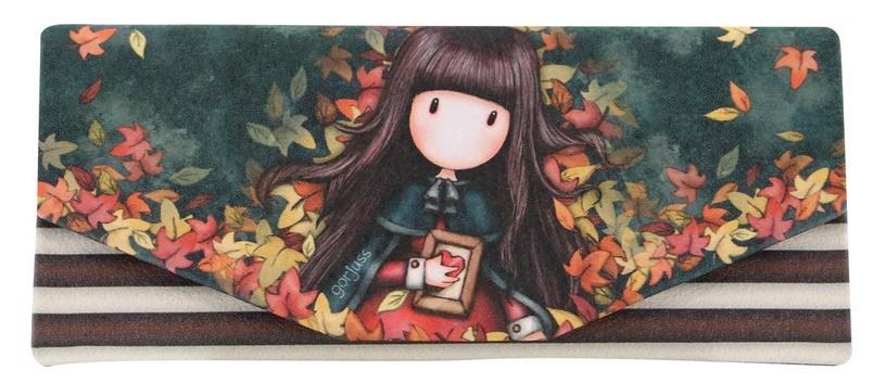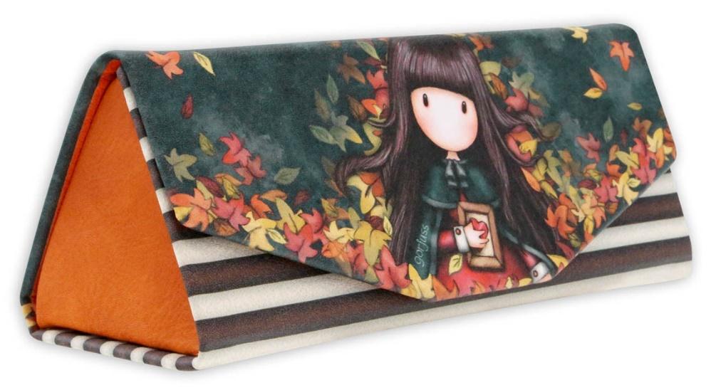 Futerał na Okulary - Gorjuss - Autumn Leaves. Futerał, który ochroni twoje okulary, wystarczy rozgiąć boczne ścianki aby uzyskać wygodną przestrzeń. Stylowy i praktyczny, przepięknie ozdobiony wizerunkiem dziewczynki Gorjuss na tle jesiennych liści. Zamykany na magnes. Wnętrze wyściełane pluszem. W chwili gdy z niego nie korzystamy, składamy boczne ścianki.