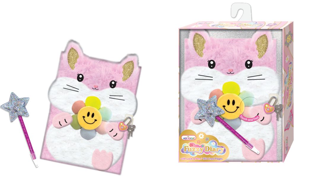 Pamiętnik zamykany na kłódkę w futrzanej okładce.