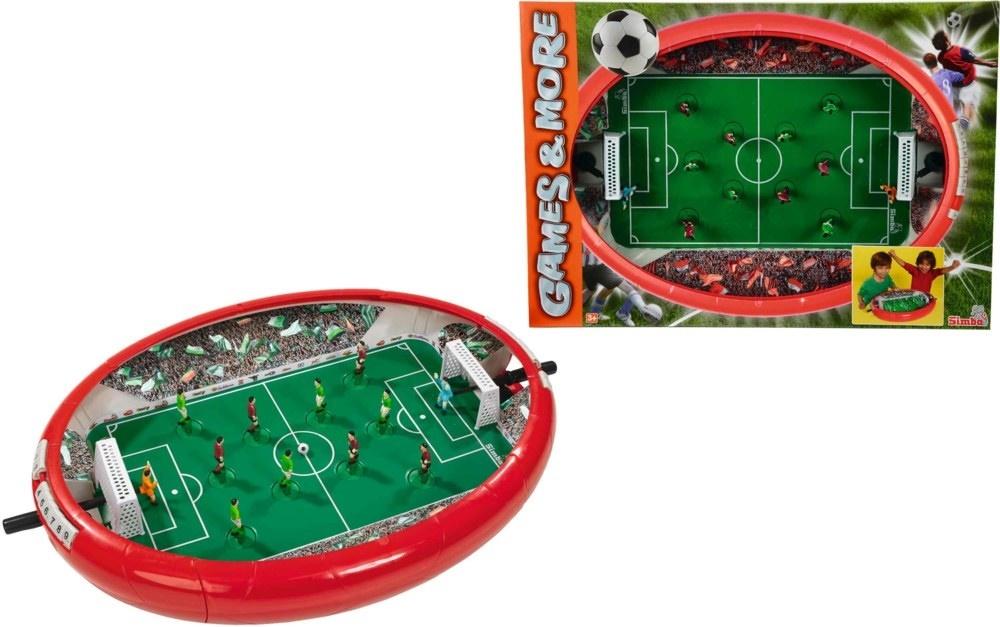Poznaj stadion piłkarski z 12 zawodnikami dwóch drużyn, którzy umieszczeni są na sprężynkach strzał w piłkę poprzez odchylenie i puszczenie zawodnika.