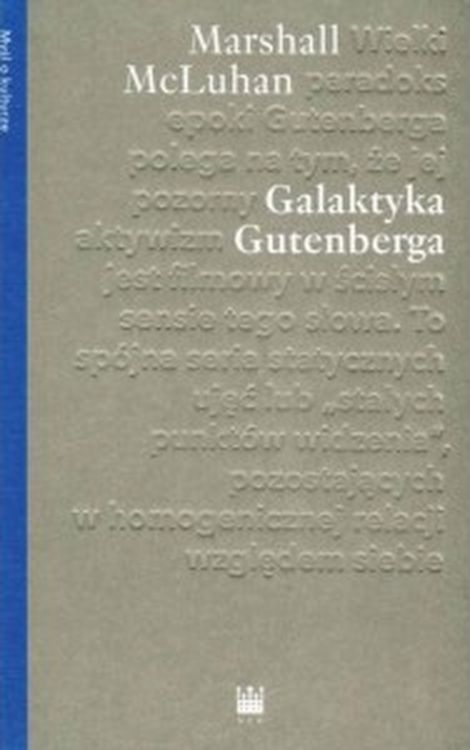 Herbert Marshall McLuhan (1911–1980), z wykształcenia literaturoznawca (uhonorowany doktoratem w Cambridge i tytułem profesorskim w University of Toronto), z zamiłowania niestrudzony badacz kultury, występujący przeciwko sztywnym ramom akademickiej nauki. Przedmiotem jego zainteresowania były przede wszystkim role, jakie w społecznym i jednostkowym życiu człowieka pełnią szeroko rozumiane media oraz związane z nimi sposoby komunikacji. Książka Galaktyka Gutenberga. Tworzenie człowieka druku (1962), ukazująca konsekwencje wynalezienia prasy drukarskiej z ruchomymi czcionkami, weszła na stałe do kanonu literatury traktującej o wzajemnych relacjach kultury, społeczeństwa i mediów. Jej pierwsze pełne polskie wydanie oddajemy właśnie w ręce czytelników.