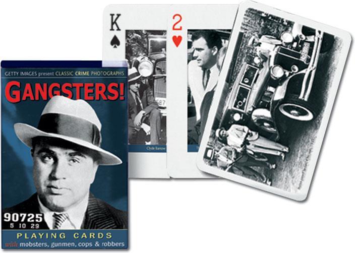 Na wszystkich awersach świat Capone, mafii i przestępstw - zdjęcia słynnych gangsterów, policjantów i złodziei. Oprócz mini przewodnika w języku angielskim, pod każdym zdjęciem podpis z datą. Talia składa się z 54 plastikowanych kart o wymiarach 63 x 88 mm.