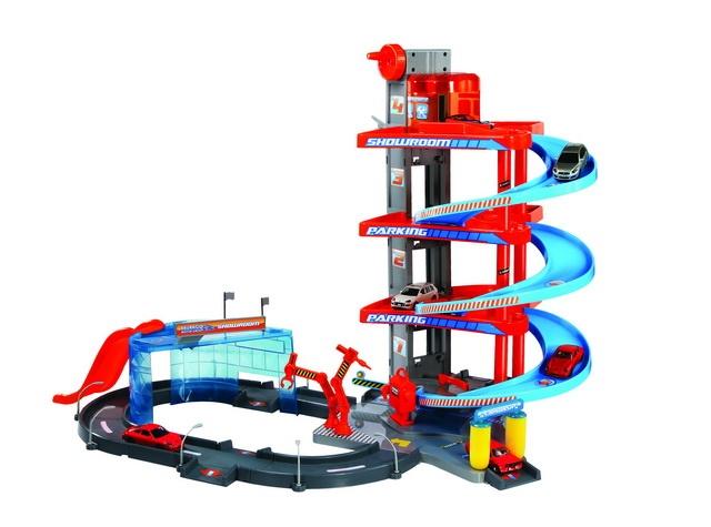 Wielopoziomowy parking posiada dodatkowy tor zjazdowy oraz wiele elementów ruchomych, co zapewni wiele godzin zabawy. Parking posiada 4 poziomy, ruchomą obrotową windę, a na dole na auta czeka automyjnia. Na popsute auta czeka również warsztat serwisowy oraz dystrybutor paliwa.