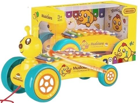 Odkryj świat dźwięków z uroczą gąsienicą do ciągnięcia "Little Musician"! Ta kolorowa, żółta zabawka łączy w sobie funkcję cymbałków z możliwością ciągnięcia, zapewniając godziny kreatywnej zabawy. Wykonana z bezpiecznych materiałów, została zaprojektowana z myślą o dzieciach powyżej 3 roku życia. Gąsienica posiada wbudowane cymbałki o różnych barwach, które pomagają w nauce rozpoznawania dźwięków i kolorów. Dołączona pałeczka ułatwia tworzenie pierwszych melodii. Solidne kółka i wygodny sznurek do ciągnięcia sprawiają, że zabawka towarzyszy dziecku w jego pierwszych krokach i podróżach po domu, rozwijając jednocześnie koordynację ruchową i zdolności motoryczne. Opakowanie z wizerunkiem wesołego kurczaka podkreśla radosny charakter zabawki. Idealna na prezent, który wspiera rozwój i zachęca do muzycznych eksperywnentów.