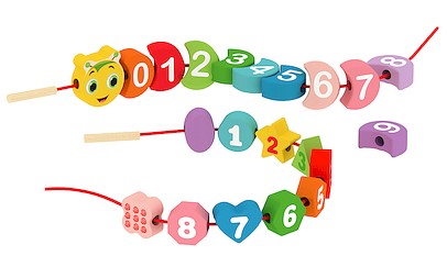 Zadaniem dziecka jest nawlekanie ich na dołączony do zestawu sznureczek. Dziecko ćwiczy w ten sposób koncentrację, umiejętności manualne i koordynację ręka - oko. Zasada bawienia przypomina szycie igłą. Igłą w tym wypadku jest drewniany patyczek, którym nawleka się kolorowe figurki.