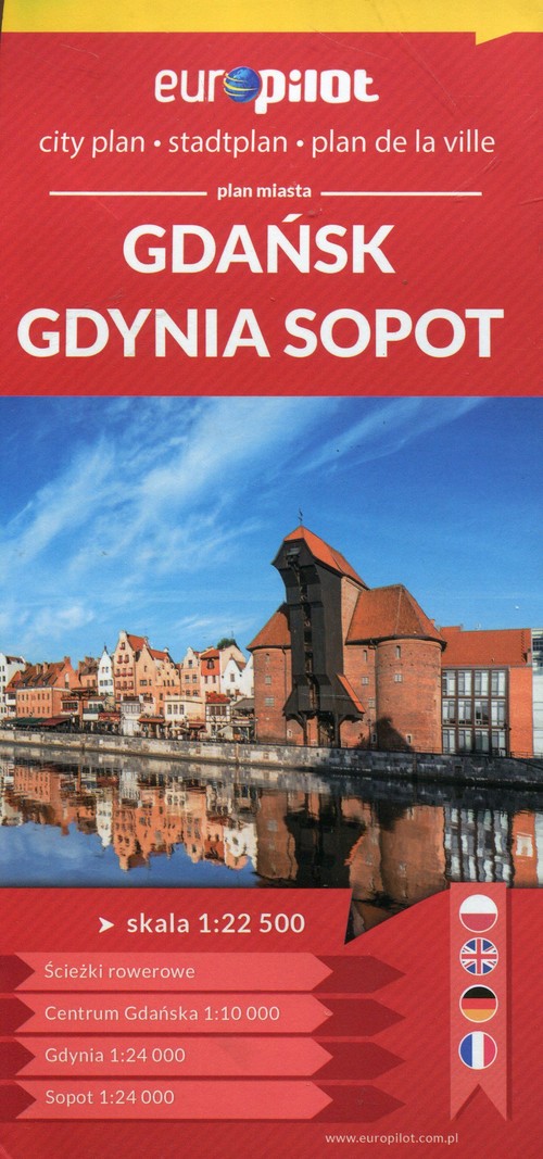 Laminowany plan Trójmiasta (Gdańsk, Gdynia, Sopot). Gdańsk w skali 1:22 500, Gdynia, Sopot w skali 1:24 000. GPS. Zawiera również: centrum Gdańska w skali 1:10 000.