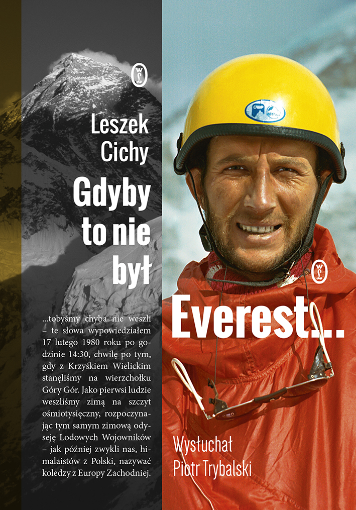 Odwaga i strach, racjonalizm i brawura, ambicja, brak pokory i chęć zapisania się w historii z jednej strony, z drugiej - liczne chwile zwątpienia i słabości. Książka Gdyby to nie był Everest..., ukazująca się w czterdziestą rocznicę pierwszego zimowego wejścia na najwyższą górę świata, to świetny dokument, w którym Leszek Cichy i słuchający jego wspomnień Piotr Trybalski nie tylko odtworzyli całą drogę na szczyt Everestu, ale też uchwycili niezwykły, najważniejszy moment złotej epoki polskiego himalaizmu.