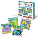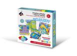 W zestawie są 4 obrazki, na które w odpowiednie miejsca należy nakleić piankowe elementy w kształcie kółka, kwadratu czy trójkąta, aby stworzyć piękne dzieło.