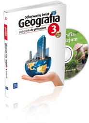 W trzeciej części podręcznika do geografii dla gimnazjum Odkrywamy świat omówiono zagadnienia z zakresu geografii regionalnej świata. Treść książki podzielono na pięć działów: Europa – nasz kontynent Azja – kontynent kontrastów Afryka – po dwóch stronach równika Ameryka – Nowy Świat Australia, Antarktyda, Arktyka – podróż na krańce świata Każdą lekcję rozpoczyna ciekawe wprowadzenie w dany temat. Wyróżniono ważniejsze terminy, informacje dodatkowe oraz ciekawostki geograficzne. Barwny, dostosowany do percepcji ucznia język oraz atrakcyjne infografiki pozwalają mu łatwiej przyswajać wiedzę i lepiej rozumieć opisywane zagadnienia. Na końcu każdej jednostki tematycznej, oprócz zwięzłej notatki, znajdują się pytania i zadania, które służą utrwaleniu informacji omawianych w danej lekcji. Na końcu książki znajduje się wklejka zawierająca mapy pomocne podczas nauki – Podział polityczny świata, Podział polityczny Europy oraz Turystyka w Europie. Do podręcznika dołączono CD-ROM z animacjami, interaktywnymi zestawami zadań, dodatkowymi informacjami i fotografiami.