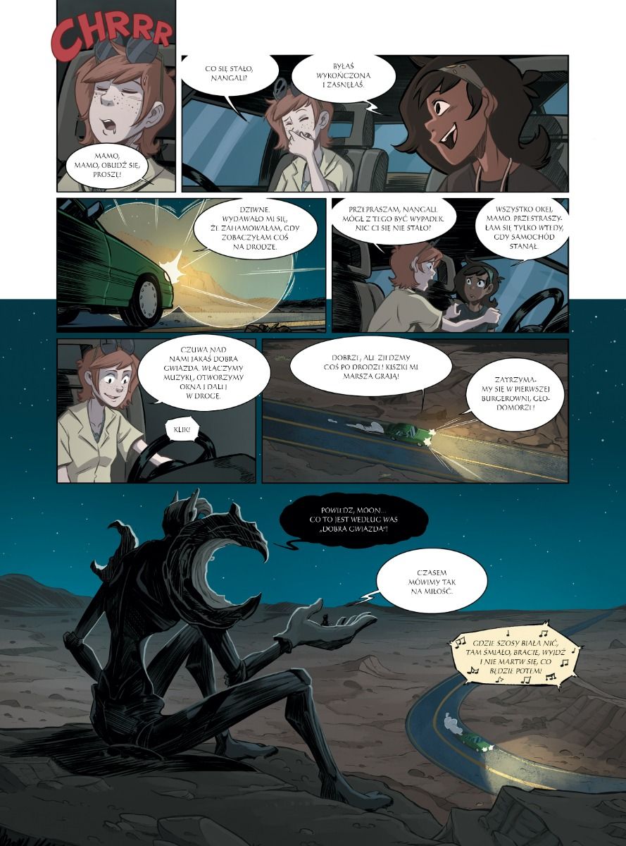 Ósmy tom serii o dzieciach połączonych tajemniczą więzią z niezwykłymi gigantami. Wcześniej deszcz meteorytów uderzył w Koreę Północną. W magmie tych ognistych kul drzemią niszczycielskie stwory, które zagrażają równowadze świata! Ta plaga dotknęła również Australię, gdzie mieszka tata jedenastoletniej Nangali. Mimo że dziewczynka nie widziała swojego ojca od lat, będzie mogła się schronić w tym dzikim regionie, gdzie gwiazdy świecą nocą z niesamowitą intensywnością. Tymczasem w Korei Moon, która odkryła swoje moce, wyruszyła na poszukiwanie innych olbrzymów zdolnych do walki z tą plagą. W towarzystwie olbrzyma, Ungdy’ego, wkrótce odnajdzie Nangali, aby zachęcić ją do przebudzenia swojego olbrzyma! Jeśli Nangali ujawni swoje moce, będzie wielkim sojusznikiem Moon. Razem mogą uratować ludzkość! Autorem scenariusza tej ekologiczno-apokaliptycznej serii jest Kanadyjczyk ukrywający się pod pseudonimem Lylian („Les Aventures débridées de Kenji le ninja”, „La Quête d’Ewilan”) oraz Francuzka Ingrid Chabbert (nominowana do Nagrody Eisnera za dwutomową serię „Elma, une vie d’ours”). Natomiast za rysunki odpowiada rysownik wszystkich wcześniejszych tomów serii „Giganci”, Francuz Paul Drouin („Titouan”, „LʼAventure fantastique”), a także Charline Forns, znana jako jedna z autorek serii „Strażniczka Małych Ludzi”.