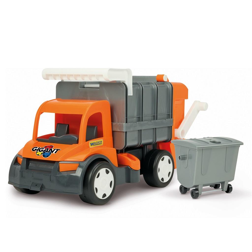 Zabawka Roku 2017 - Gigant Śmieciarka to wielki, wytrzymały pojazd o długości 60 cm w kolorze pomarańczowym. Śmieciarka wyposażona jest w ruchomy podnośnik do opróżniania kontenerów, posiada otwieraną tylną klapę. W zestawie znajduje się kontener na śmieci, który można przyczepić do tyłu samochodu. Ruchome elementy, mocna konstrukcja o udźwigu do 50 kg, która odwzorowuje prawdziwy pojazd to gwarancja atrakcyjnej zabawy. Całość wykonana jest z wysokiej jakości tworzywa sztucznego odpornego na warunki atmosferyczne.