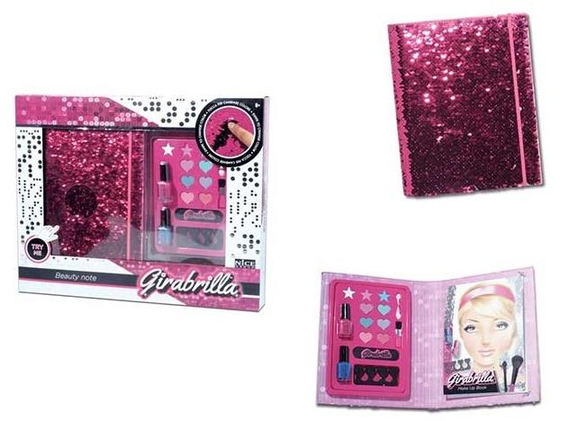 Pamiętnik z odwracanymi cekinami na okładce. W zestawie paletka kremowych cieni do powiek, 2 butelki lakieru do paznokci, separator do pedicure oraz akcesoria. Dla dzieci w wieku od 8 lat.