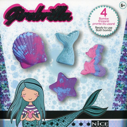 Girabrilla Syrenka- zestaw musujących bomb kąpielowych. W razie dostania się do oczu przemyć dużą ilością wody. W razie połknięcia wypłukać usta, popić dużą ilością wody. Skonsultować się z lekarzem. Produkt perfumowany, zawiera składniki mogącę powodować alergię. Wiek 6+