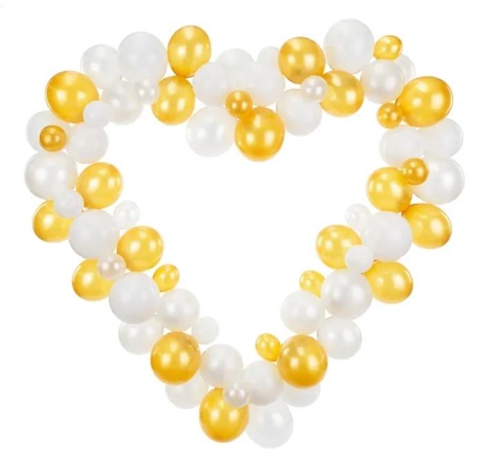 Biało-złota girlanda balonowa ze stelażem Serce, zestaw zawiera 68 balonów lateksowych (22 szt. w kolorze Pastel Pure White, 23 szt. w kolorze Metalic Pure White, 23 szt. w kolorze Metallic Gold), 16 kartonowych elementów, 20 szt. naklejek dwustronnych, instrukcję. Wymiary po złożeniu ok 166 x 160 cm. Instrukcja w zestawie.