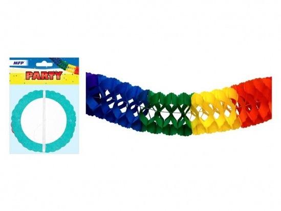 Papierowa girlanda MFP paper. Idealne dopełnienie wystroju wnętrza. Uświetni każdą imprezę, zarówno dla dzieci, jak i dla dorosłych. Zachwyci wszystkich gości! SPOSÓB UŻYCIA: Elementy girlandy są połączone sznurkiem. Należy je rozciągnąć i zawiesić w dowolny sposób w obu końcach pomieszczenia. Dostarczane w woreczku z zawieszką. Wymiar: 145mm x 145mm x 3mm (szer. x wys. x gł.)
