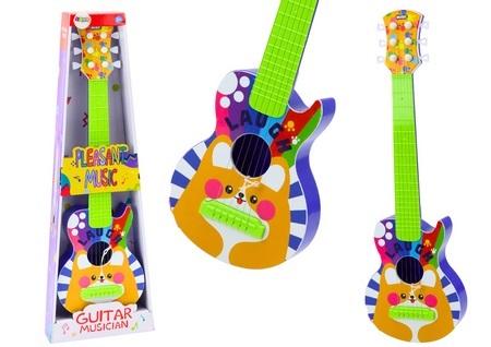 Gitara Zabawkowa Dla Dzieci Rockowa Regulacja Strun Piesek Kolorowa Gitara zabawkowa dla dzieci to doskonały wybór dla małych miłośników muzyki, pragnących poczuć się jak prawdziwi gitarzyści. Gitara jest zaprojektowana w kształcie gitary elektrycznej, co nadaje jej nowoczesny i profesjonalny wygląd. Całość jest ozdobiona uroczym motywem wesołego pieska, który dodaje instrumentowi przyjaznego charakteru i zachęca do zabawy. Instrument mieni się wieloma kolorami, co z pewnością przyciągnie uwagę dzieci i sprawi, że gra na gitarze stanie się jeszcze bardziej atrakcyjna. Metalowe struny nadają gitarze realistyczne brzmienie, pozwalając młodym muzykom poczuć autentyczność podczas gry. Dodatkowym elementem jest kostka w kształcie serduszka, zawieszona na sznurku, która nie tylko dodaje uroku, ale także ułatwia manipulację strunami, pomagając w nauce pierwszych akordów. Z tyłu gitary znajdują się pokrętła do naciągnięcia strun, co umożliwia dostosowanie brzmienia instrumentu do preferencji małego użytkownika. Dzięki temu dzieci mogą eksperymentować z różnymi dźwiękami i rozwijać swoje muzyczne umiejętności. Ta kolorowa i funkcjonalna gitara to idealny sposób na wprowadzenie dzieci w świat muzyki, oferując im mnóstwo radości i inspiracji. Wymiary gitary: 56,5cm x 17cm x 5,5cm Wymiary opakowania: 61,5cm x 20,5cm x 6,5cm Posiada certyfikat CE, ponadto jest zgodny z normą EN71. Przeznaczony dla dzieci powyżej 3 roku życia.