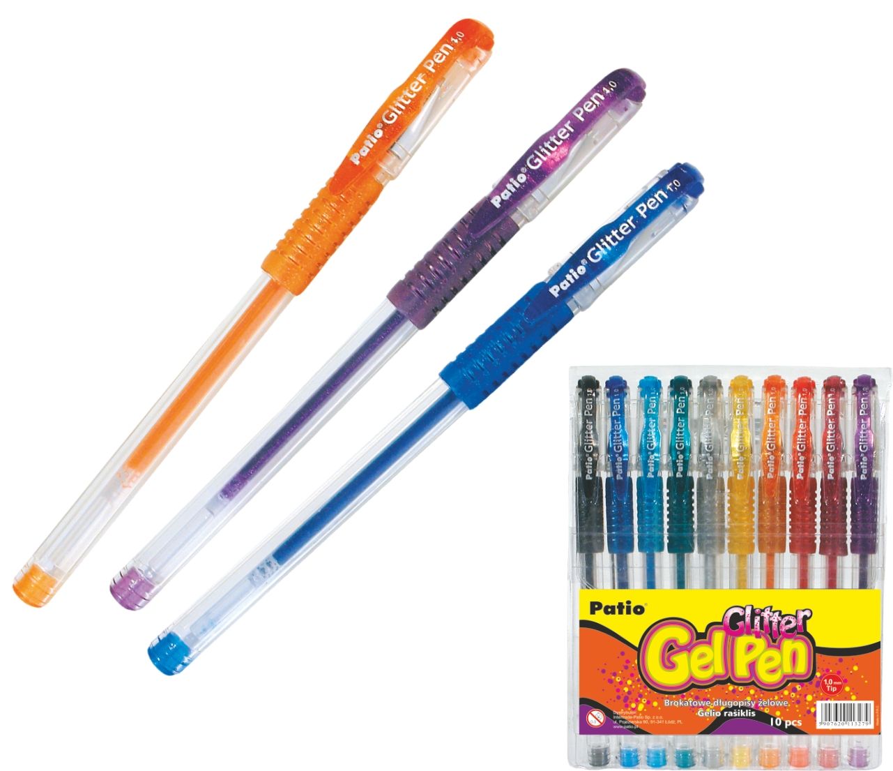 Zestaw 610kolorowych długopisów brokatowych w plastikowym etui. Końcówka 1 mm.