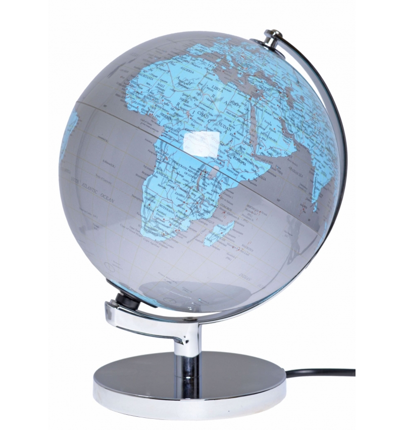 Globus podświetlany to świetny pomysł na lampkę na biurku lub szafce - wieczorową porą po włączeniu stworzy delikatną poświatę na globusie. Kabel czarny długości ok 1m.