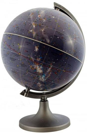 Na globusie uwidoczniono gwiazdozbiory. Zaznaczono klasyfikację widmową gwiazd, ich typy, wielkość, znaki zodiaku i inne niż gwiazdy obiekty astronomiczne (skupiska gwiazd, galaktyki, mgławice itp.).