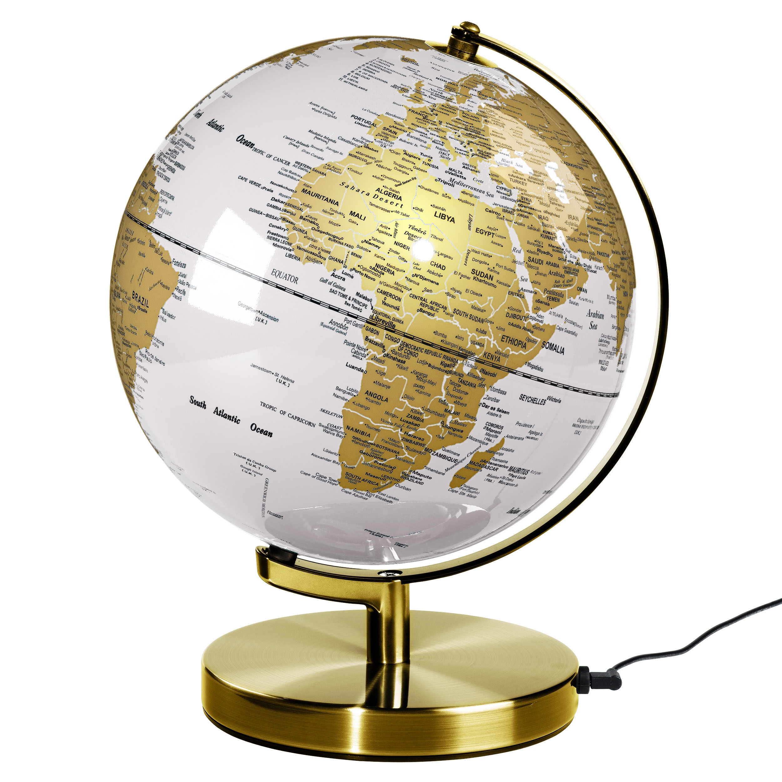 Globus podświetlany 25 cm - Metallic Brass/Arctic White biało-złoty globus biurkowy.
