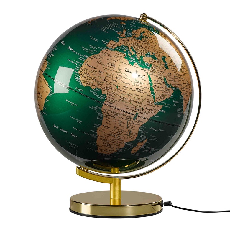 Globus podświetlany 30 cm - Fir Green and Brass to duży, bardzo elegancki, globus biurkowy.