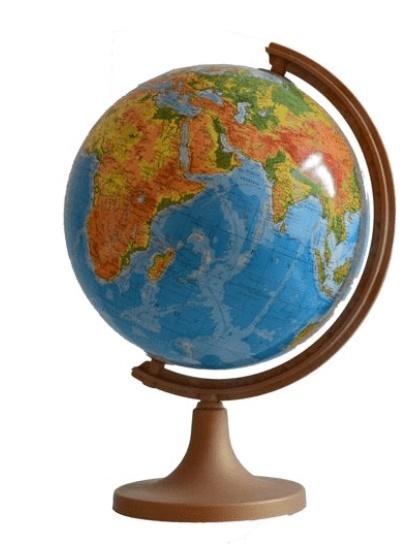 Globus 320 mm mapa fizyczna, plastikowa niska stopka, cięciwa plastikowa.