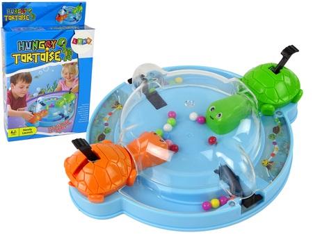 Zręcznościowa Gra Głodne Żółwie Sprawdź który żółw zdoła zjeść wszystkie kulki w jak najkrótszym czasie ! Świetna zabawa gwarantowana ! Czas na mały obiadek! Głodne żółwie uwielbiają jeść, a ten, który zje najwięcej kuleczek, wygrywa! Zręcznościowa gra dla najmłodszych w poręcznym, niewielkim rozmiarze ale także fantastyczna zabawa dla całej rodziny! Kieszonkową wersję gry możesz zabrać gdzie tylko chcesz ! Znakomicie sprawdzi się w podróży, podczas wizyty w restauracji, poczekalni czy wizyty u znajomych ! Przygotuj się na wielką ucztę - nasze wesołe zwierzątka są naprawdę głodne. Zabawa w "Głodne żółwie" dostarcza niesamowitej rozrywki zarówno dzieciom, jak i dorosłym. To nie jest zwykła gra planszowa, nie mamy pionków ani kostki. Na czym polega zabawa? Na jak najszybszym złapaniu do paszczy kolorowych kulek. Po zwolnieniu wszystkich kulek gracze "uruchamiają" swoje żółwie. Zwierzątka posiadają dźwignię, po naciśnięciu której wyciągają pyszczki i pałaszują kulki. Gracz, którego żółw zjadł ich najwięcej wygrywa. Znakomita gra dla dwóch osób ! Świetny pomysł na prezent ! Wymiary zabawki: 18 cm x 15 cm x 15 cm Wymiary opakowania: 24 cm x 15 cm x 5 cm Przeznaczona dla dzieci powyżej 4 roku życia. Zgodne z normą EN71 i certyfikatem CE.