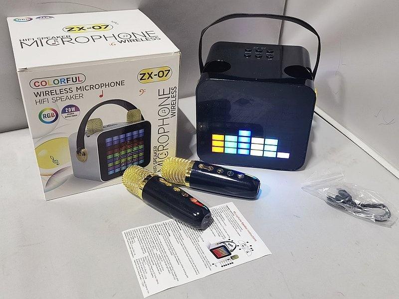głośnik kwadratowy ze światłem, 2 mikrofony, 16x14x13cm