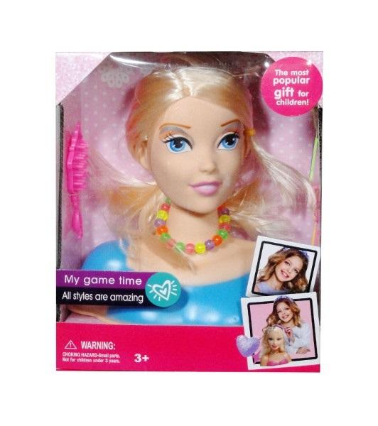 Zabawka głowa do czesania. Pozwala wyćwiczyć zmysł zręcznościowy, a także odkryć talent fryzjerski u małych dziewczynek. W zestawie znajdują się m.in. grzebień oraz 4 kolorowe spinki, które pozwolą dziewczynkom na różne stylizacje. #&Produkt zapakowany w kartonowe opakowanie z przezroczystym okienkiem.#&Produkt dla dzieci od 3 lat. #&Podane wymiary są wymiarami opakowania