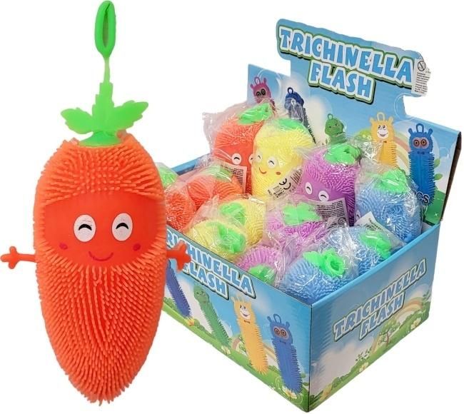 Gniotek Błyskający Trichinella Flash - Interaktywna Zabawka Sensoryczna (Cena za 1 sztukę, Opakowanie zbiorcze 12 sztuk) Odkryj świat sensorycznej radości z Gniotkami Błyskającymi Trichinella Flash! Te wyjątkowe gniotki, przypominające swoim kształtem uroczą marchewkę z zabawnymi oczkami i rączkami, to prawdziwa gratka dla zmysłów. Wykonane z przyjemnego w dotyku, elastycznego materiału z miękkimi, gumowymi wypustkami, zapewniają nie tylko satysfakcjonujące wrażenia dotykowe, ale także są doskonałym narzędziem do redukcji stresu i poprawy koncentracji. Ale to nie wszystko! Każdy Gniotek Błyskający Trichinella Flash posiada wbudowany mechanizm świetlny, który aktywuje się przy każdym uderzeniu czy dynamicznym ruchu, rozświetlając zabawkę od środka i dodając element wizualnej ekscytacji. Dzięki swojemu kieszonkowemu rozmiarowi, gniotki te są idealne do zabrania wszędzie - do szkoły, pracy, czy w podróż. Są sprzedawane pojedynczo, co pozwala na elastyczność w zakupie, jednak dostępne są również w praktycznym opakowaniu zbiorczym zawierającym 12 sztuk różnokolorowych gniotków. To sprawia, że są idealnym wyborem na prezenty urodzinowe, nagrody w konkursach, upominki na imprezy dla dzieci, czy po prostu jako wesołe i stymulujące gadżety do codziennego użytku. Przynieś blask i radość do swojego życia z Gniotkami Błyskającymi Trichinella Flash!