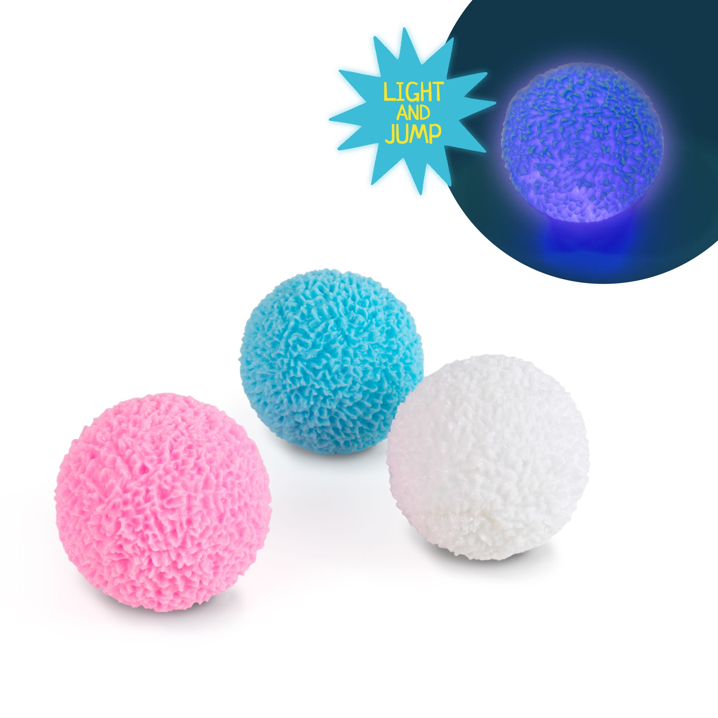 Jasne emocje przy każdym skoku! Dzięki tej kuli Light & Jump Ball o olśniewającym wyglądzie kuli śnieżnej i czerwono-niebieskim migającym efekcie świetlnym nie ma miejsca na nudę!