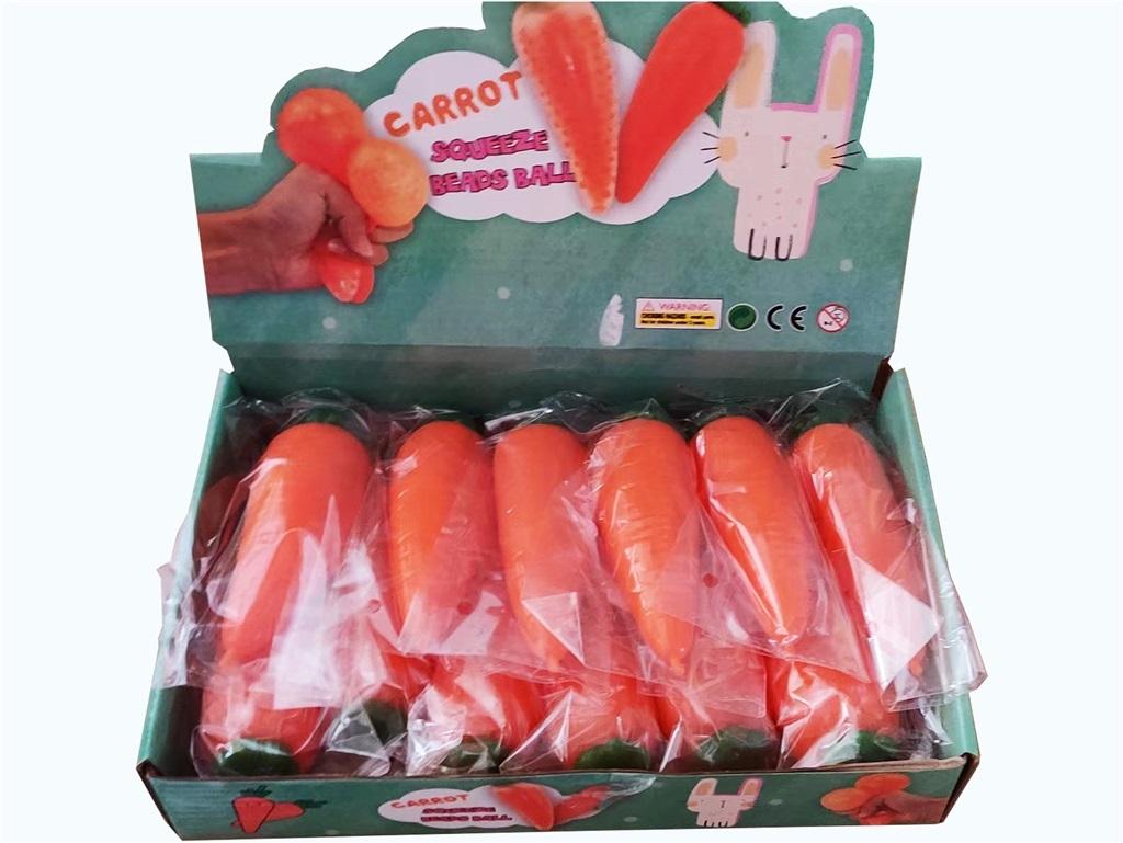 Miękka zabawka antystresowa w kształcie marchewki. Ten duży owoc wypełniony płynem podobnym do żelu zapewnia świetną zabawę podczas ściskania, rozciągania i zgniatania oraz zapewnia bardzo intrygujące wrażenia dotykowe. Stanowi zabawną alternatywę dla klasycznej piłki stresowej. Wypełniony kulkami hydrożelowymi. Wymiary: ok. 9 cm.