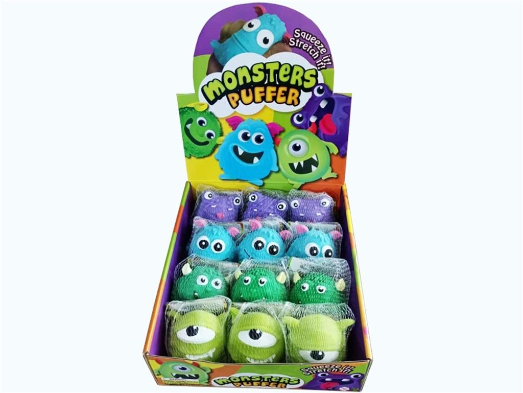 Miękka zabawka antystresowa w kształcie potworka. Stanowi zabawną alternatywę dla klasycznej piłki stresowej. Wypełnione płynem żelowym podobnym w do pianki do golenia. Wymiary: ok. 8 cm.