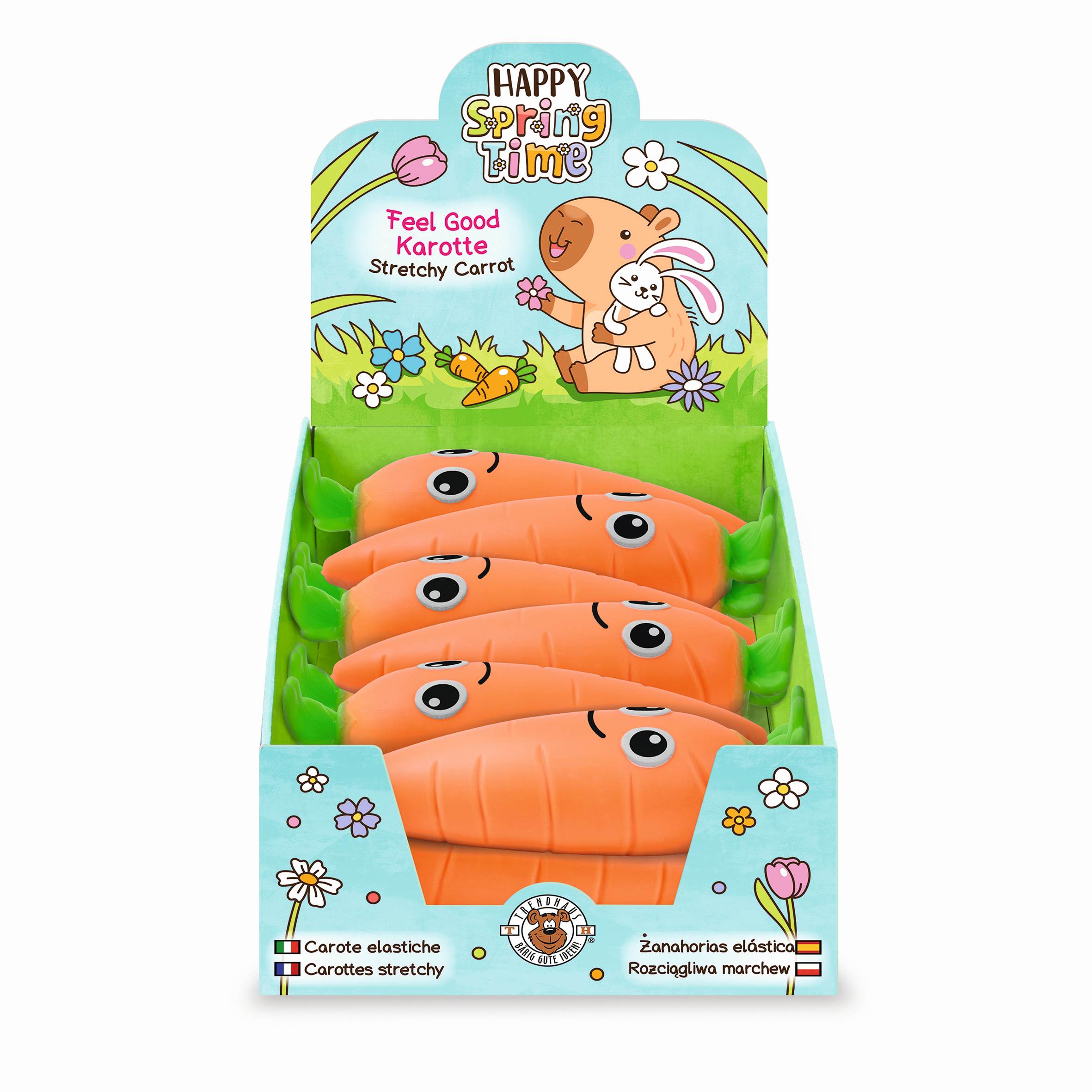 Ta zabawna, rozciągliwa marchewka z przyjemną, elastyczną powierzchnią z miękkiej gumy zapewnia świetną zabawę.