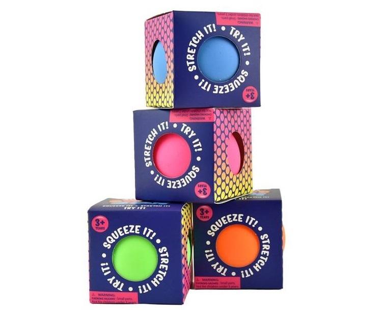 Różne wzory: z zewnątrz niebieski, różowy, zielony lub pomarańczowy o średnicy 7 cm każdy. Po ściśnięciu, gniotek ma inna barwę w środku - niespodzianka....Gniotki są wysokiej jakości, wykonane z dbałością o szczegóły. Są odpowiedniej wielkości do dłoni dziecka. Odporne na mocne ściskanie i ugniatanie. Gniotki te, są wykorzystywane w terapii sensorycznej. Mają działanie uspokajające i odstresowujące. Są również świetnym narzędziem w terapii ręki, świetnie rozwijają zmysł dotyku oraz wpływają na rozwój małej motoryki.