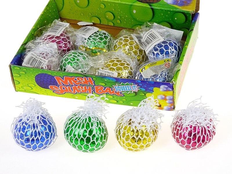 gniotek w siatce 6cm, kulki żelowe, display 12szt; Box