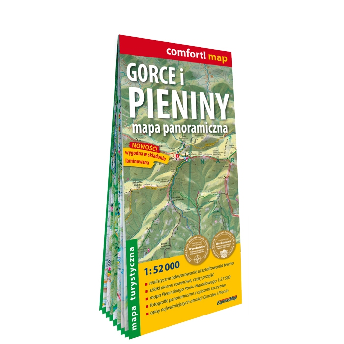Mapa panoramiczna Gorców i Pienin to wyjątkowa publikacja, w której zastosowano tzw. rzut panoramiczny do prezentacji ukształtowania terenu, co w połączeniu z cieniowaniem dało niezwykle realistyczny efekt przestrzenny przypominający widok na góry z lotu ptaka. Jednocześnie mapa prezentuje wszystkie niezbędne dla turysty elementy, m. in.:
