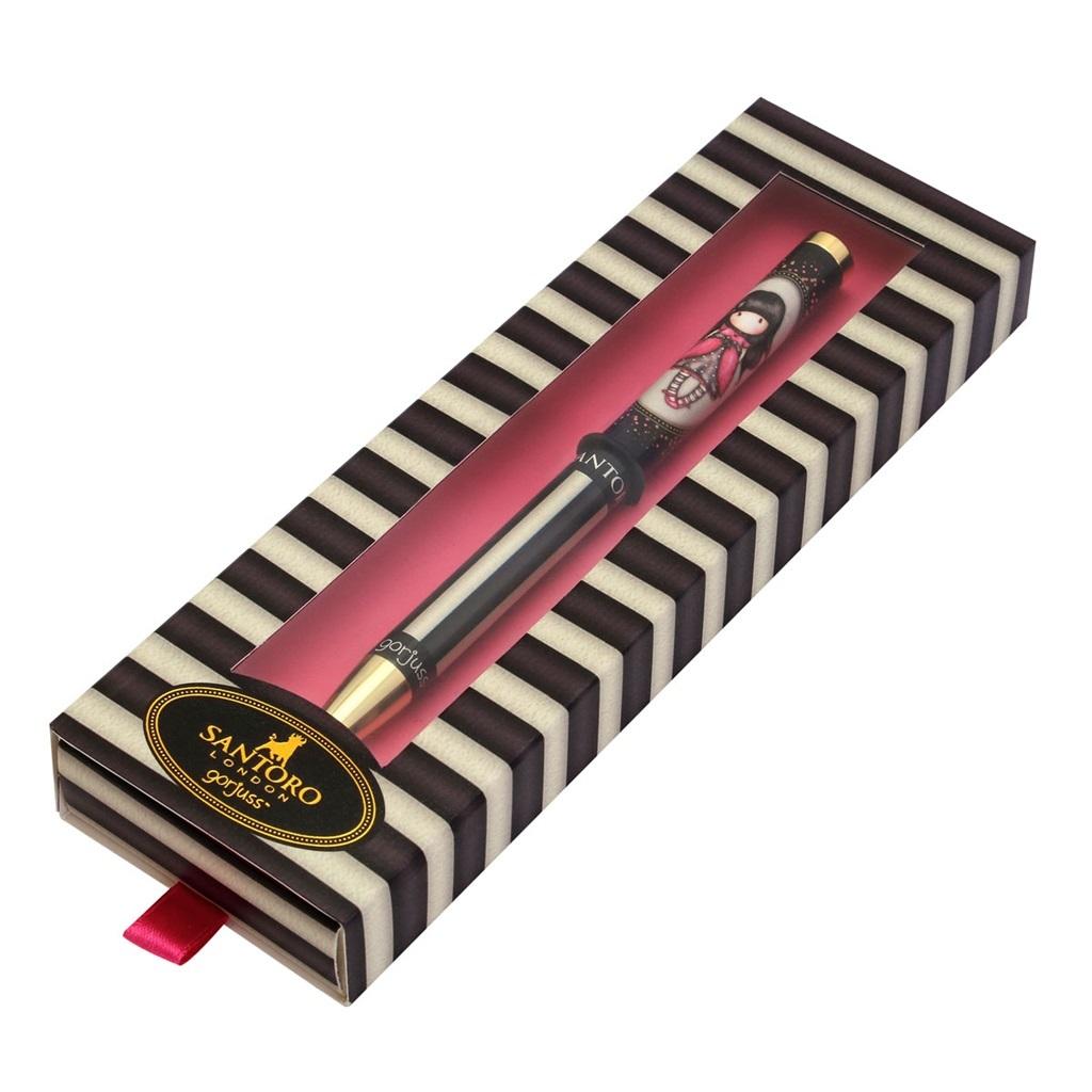 Gorjuss Metalowy długopis - Ladybird Piękny dodatek do każdego piórnika! Elegancki prezent lub dodatek do biura czy domu. Długopis pięknie wykończony złotymi detalami oraz paseczkami Produkt zapakowany został w eleganckie pudełko z okienkiem, co sprawia że doskonale nadaje się na prezent Długopis z czarnym, wymiennym wkładem Rozmiar: 17 cm x 5 cm x 2 cm