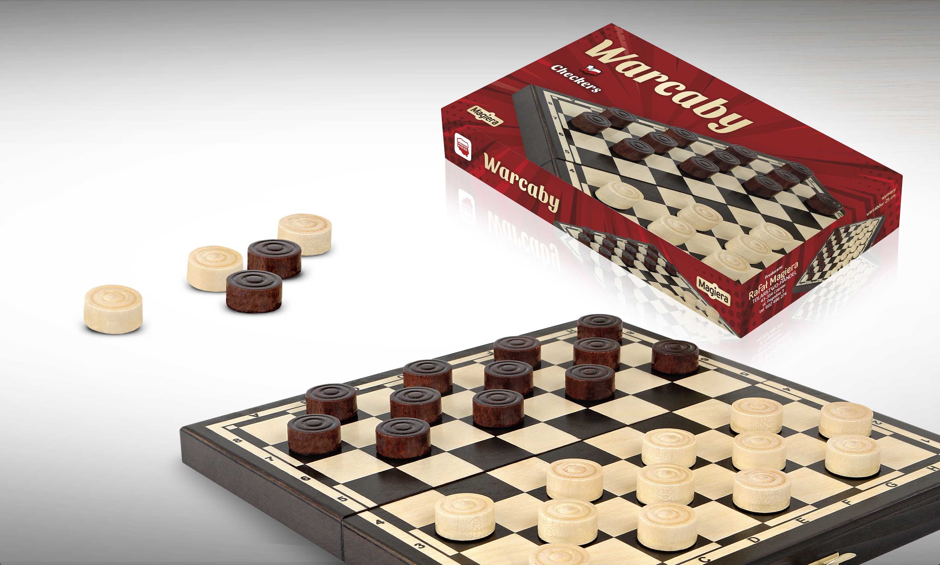 Warcaby to klasyczna gra towarzyska znana na całym świecie. Celem gry jest zbicie wszystkich pionków przeciwnika. Zestaw gry zawiera wysokiej jakości szachownicę z drewna brzozowego oraz 24 piony w dwóch kolorach (brąz i biały) z drewna bukowego. Piony podklejone są materiałem, dzięki którym szachownica nie rysuje się i są chowane wewnątrz kasety w osobnych przegrodach. Gra w warcaby rozwija logiczne myślenie, cierpliwość oraz strategiczne przewidywanie kolejnego ruchu.