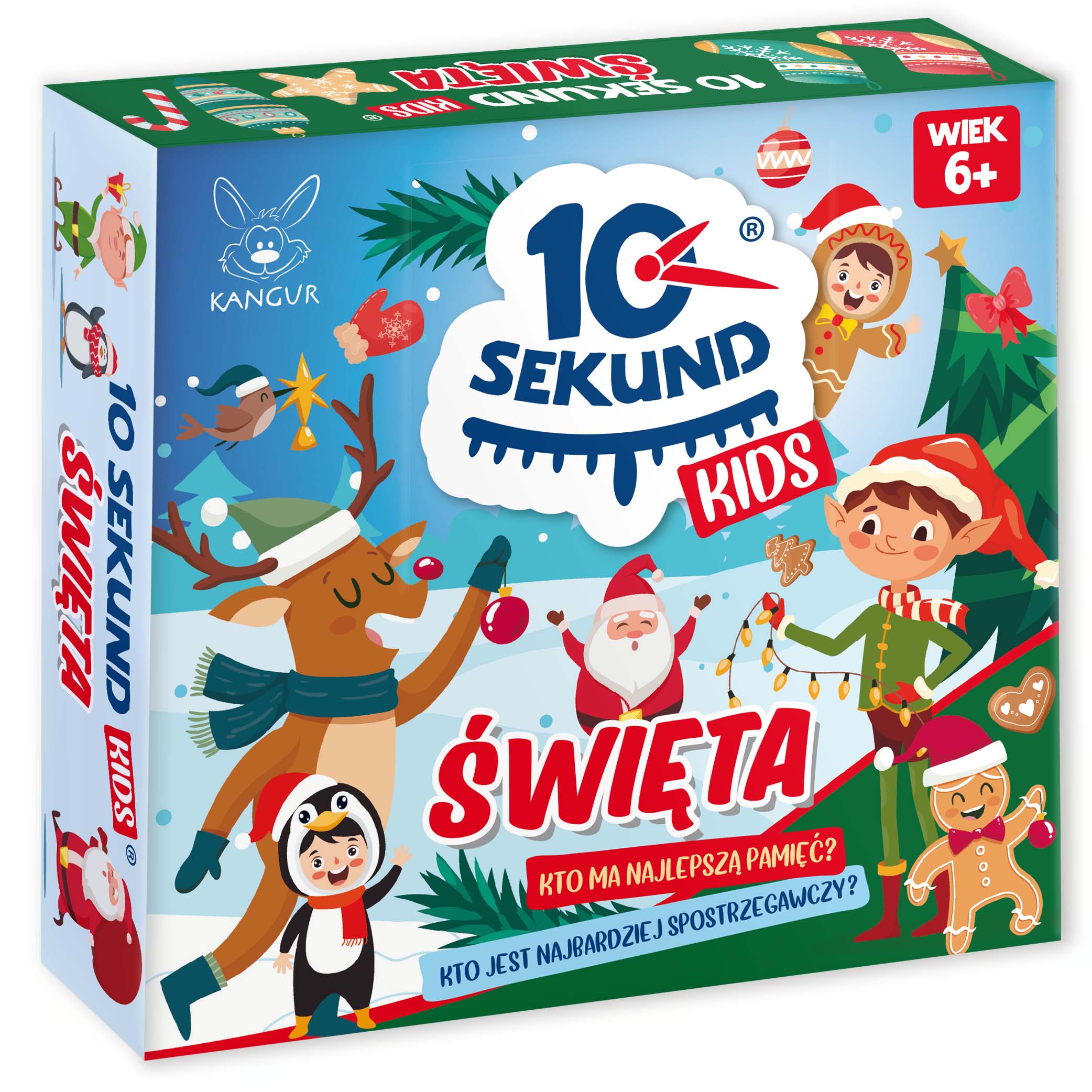 Gra z serii 10 Sekund Kids tym razem o tematyce Świątecznej, bo przecież każde dziecko lubi Świętego Mikołaja :) Karty dostosowane dla dzieci w wieku 6+. Kto z Was jest najbardziej spostrzegawczy, a kto ma najlepszą pamięć? Wytęż wzrok! Masz tylko 10 sekund , aby przyjrzeć się obrazkowi i poprawnie odpowiedzieć co widziałeś. Rzuć kostką, odpowiedz na pytanie i wygraj!