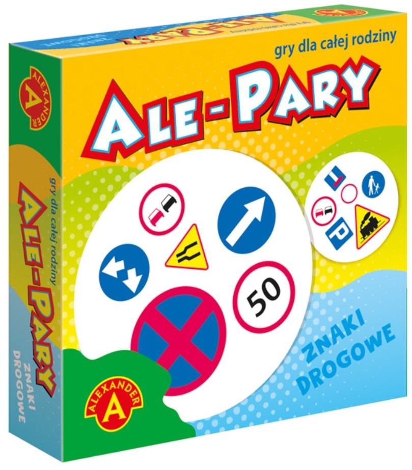 Ale Pary Znaki drogowe to szybka, prosta gra karciana w której wygrywa ten kto wykaże się największą spostrzegawczością. W opakowaniu znajdziemy zestaw 31 kart z 6 obrazkami przedstawiającymi znaki drogowe. Dwie dowolne karty zawsze mają po jednym wspólnym obrazku, ale żeby nie było zbyt łatwo, obrazki te często mają różną wielkość. Gra polega na jak najszybszym znalezieniu wspólnego obrazka. W zależności od wariantu wygrywa ten, kto zdobędzie najwięcej kart, bądź jak najszybciej pozbędzie się wszystkich.Gra na aspekt edukacyjny, może być wspaniamym pretekstem do omówienia znaczernia znaków drogowych. Tym bardziej, że w instrukcji znajdziemy ich opis.