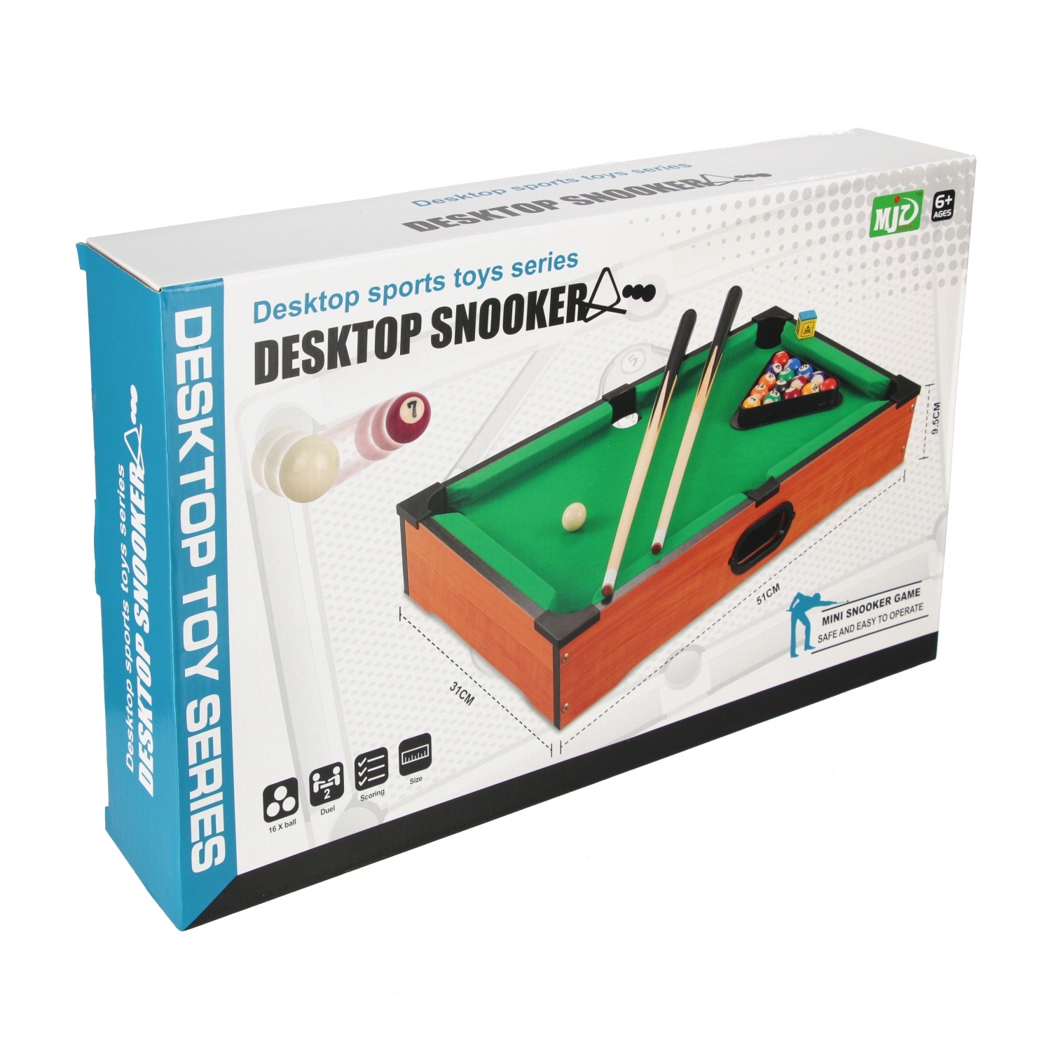 Zawartość zestawu  stół, 16 bil, 2 x kijki   czyścik, trójkąt, 4 pojemniki na bile.