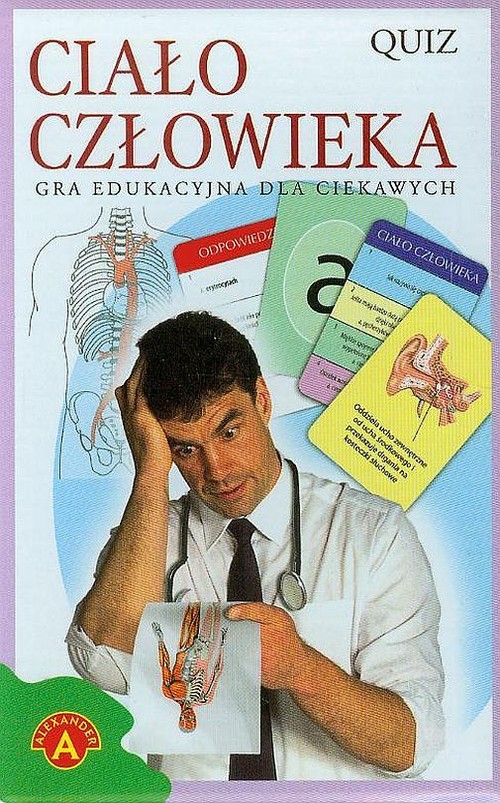 Quiz-CIAŁO CZŁOWIEKA"" to gra edukacyjna dla 2-3 osób. Jej uczestnicy rywalizują ze sobą odpowiadając kolejno na pytania wskazywane na kartach pytań i odpowiedzi. Tematem pytań jest budowa i funkcjonowanie ciała człowieka. W czasie emeocjonującej zabawy gracze mogą dowiedzieć się wielu interesujących faktów o budowie i działaniu własnego ciała.