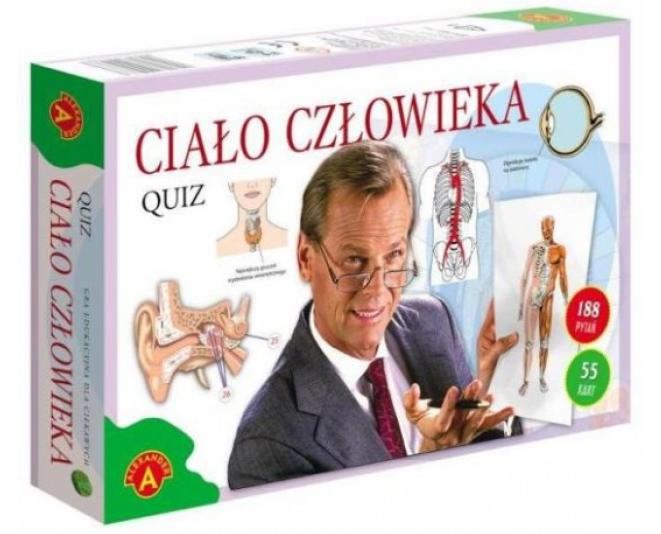 Quiz-CIAŁO CZŁOWIEKA"" to gra edukacyjna dla 2-3 osób. Jej uczestnicy rywalizują ze sobą odpowiadając kolejno na pytania wskazywane na kartach pytań i odpowiedźi. Tematem pytań jest budowa i funkcjonowanie ciała człowieka. W czasie emeocjonującej zabawy gracze mogą dowiedzieć się wielu interesujących faktów o budowie i działaniu własnego ciała.