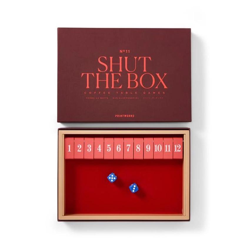 Klasyczna gra w Shut the Box wydana przez PRINTWORKS w nowoczesnej, unikalnej wersji.