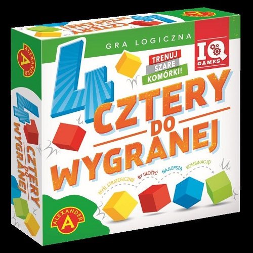,,Cztery do wygranej"" to oparta na prostych  zasadach gra, która dostarczy satysfakcji każdemu. Do dyspozycji mamy 25 kości w pięciu kolorach. Zabawa polega na losowym bądź wskazanym w  instrukcji ułożeniu ich na matrycy. Następnie każdy z graczy wybiera  kolor swoich kości. Od tego momentu musimy ułożyć cztery kości w swoim  kolorze w linii prostej, wzdłuż, w poprzek lub po przekątnej. Liczy się  także ułożenie kości w kwadracie obok siebie. Ruchy wykonujemy  zamieniając miejscami swoje kości z kośćmi w innym kolorze. Trudności  całej operacji dodaje fakt, że nie wolno przestawiać nam kości  przeciwnika. 3 warianty gry sprawią, że nigdy się nie znudzisz.
