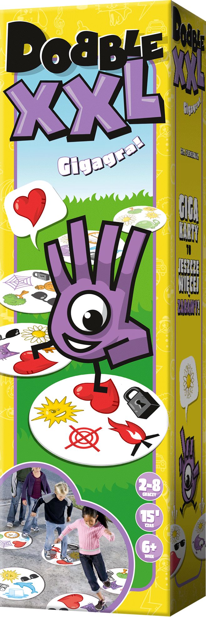 W domu, w szkole czy w plenerze - gigantyczna wersja Dobble rozrusza Wasze umysły i ciała niezależnie od warunków! Pokaźne opakowanie skrywa 20 ""kart"" wykonanych z wytrzymałego materiału PVC, z których każda ma 45 centymetrów średnicy. Dzięki temu Dobble XXL doskonale nadaje się do aktywnych zabaw na świeżym powietrzu.