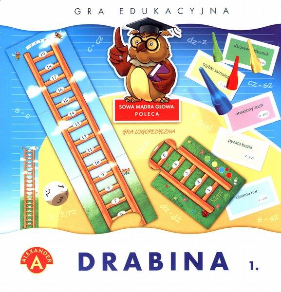 Drabina 1"" to gra logopedyczna mająca na celu rozwój mowy dziecka w wieku przedszkolnym i wczesnoszkolnym w zakresie poprawnego wyróżniania głosek opozycyjnych, poszerzenia słownika czynnego oraz rozwoju percepcji słuchowej. Materiał przeznaczony jest do utrwalania w układach głosek s,z,c,dz,sz,z,cz,dż,ś,ź,ć,dź,ż. Gra dla 1-4 graczy w wieku od 5 lat.