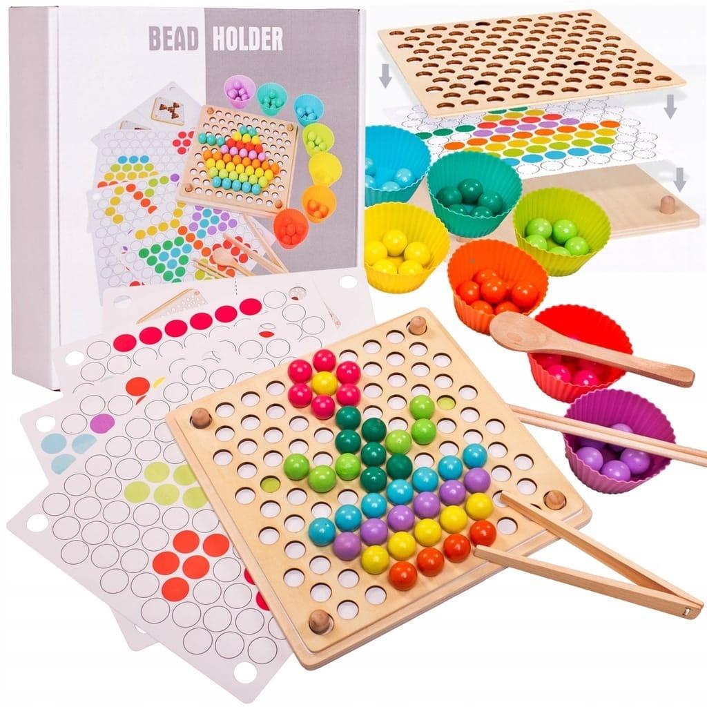 Układanie kolorowych kulek wymaga precyzji ruchów ręki - zabawka