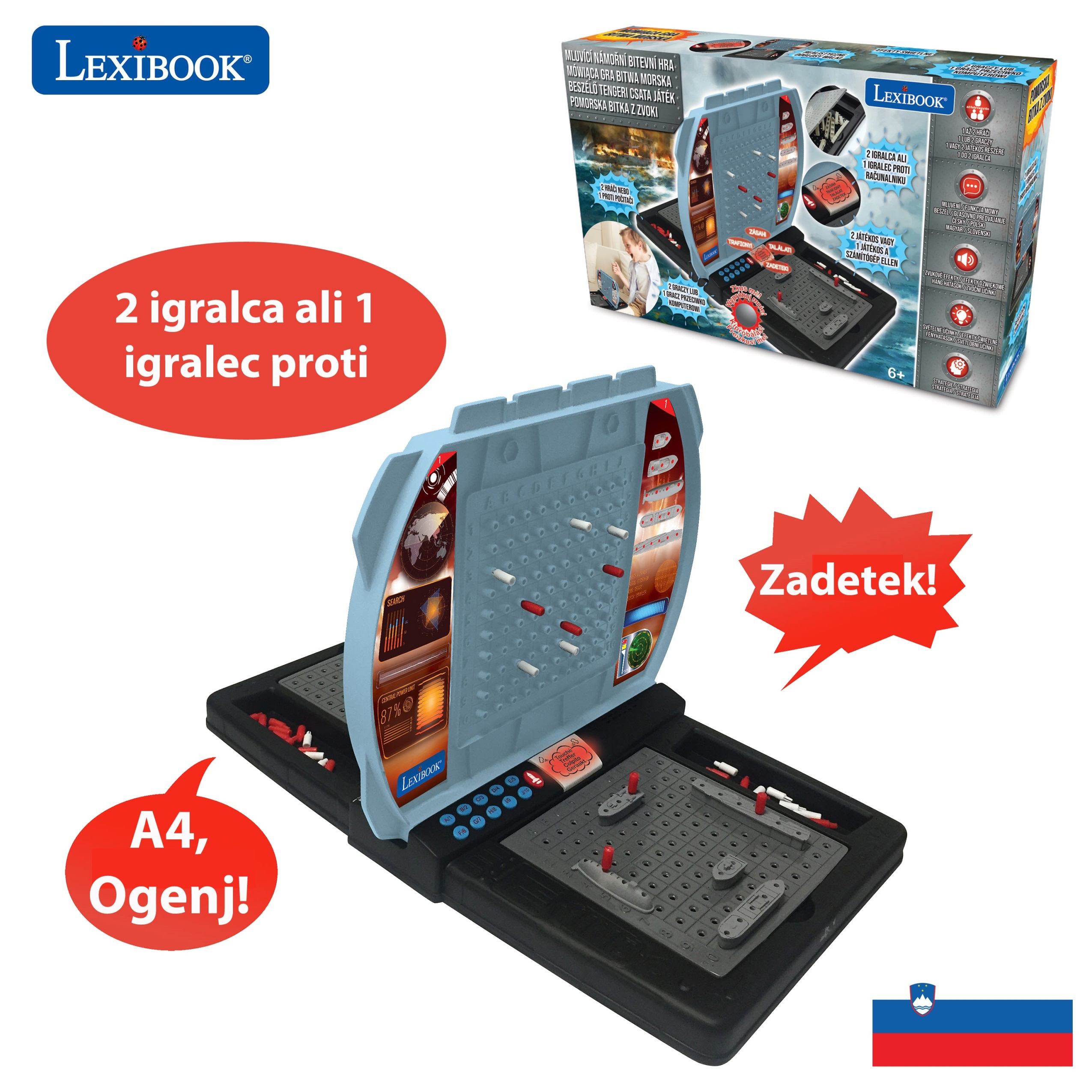 * 4 języki: CZ/SL/PO/HU * Realistyczne dźwięki walki odzwierciedlające sytuację w grze (ustawienie, ogień, chybiony / trafiony / zatopiony cel), aby intensywnie przeżywać bitwę! * Migające światło, gdy łódź zostanie uderzona lub zatopiona.
